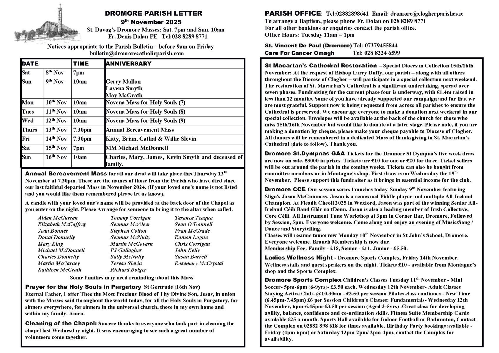 - For all other queries phone 028 8289 8641 Tuesday 11am – 1pm Email: dromore@clogherparishes.ie