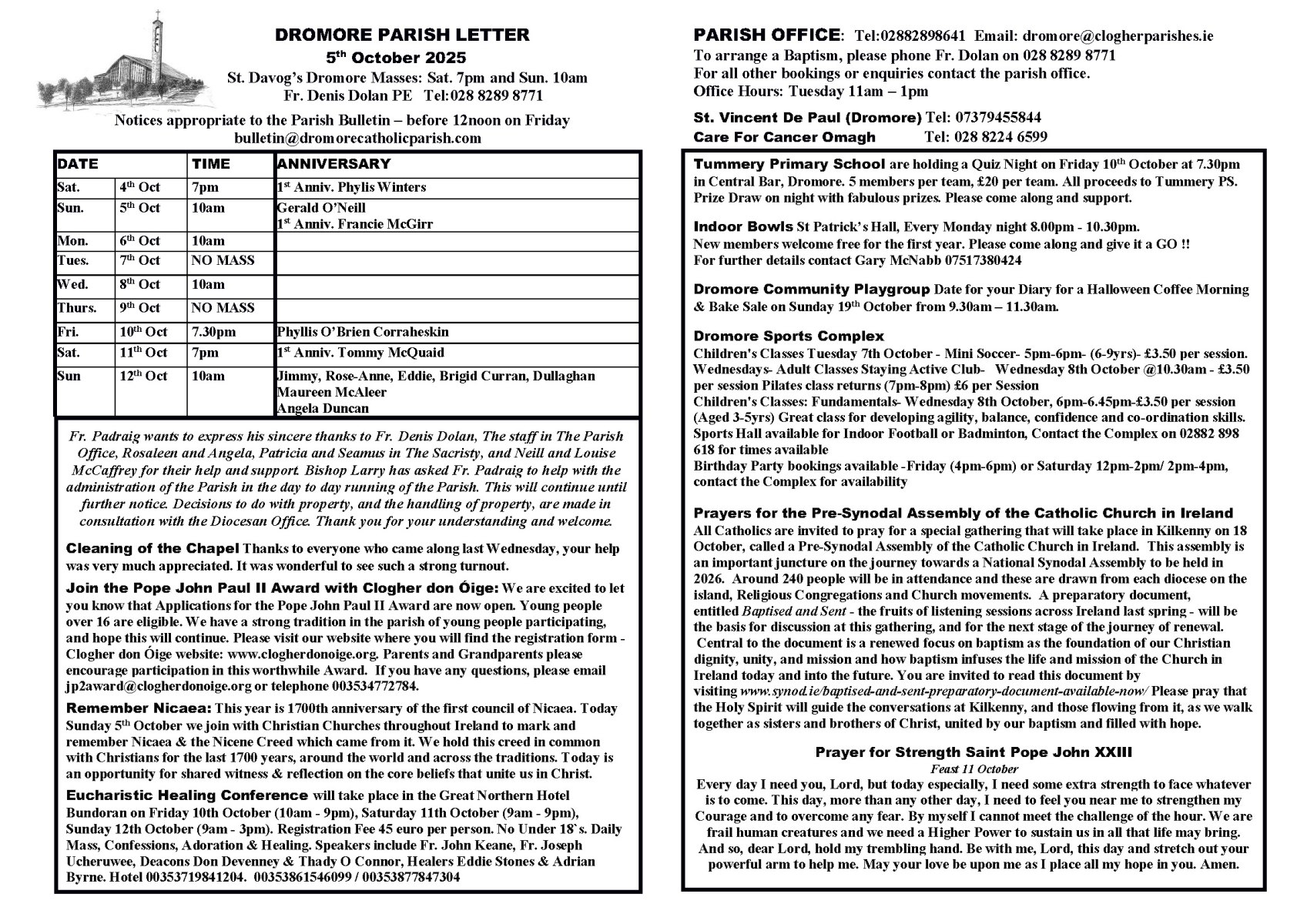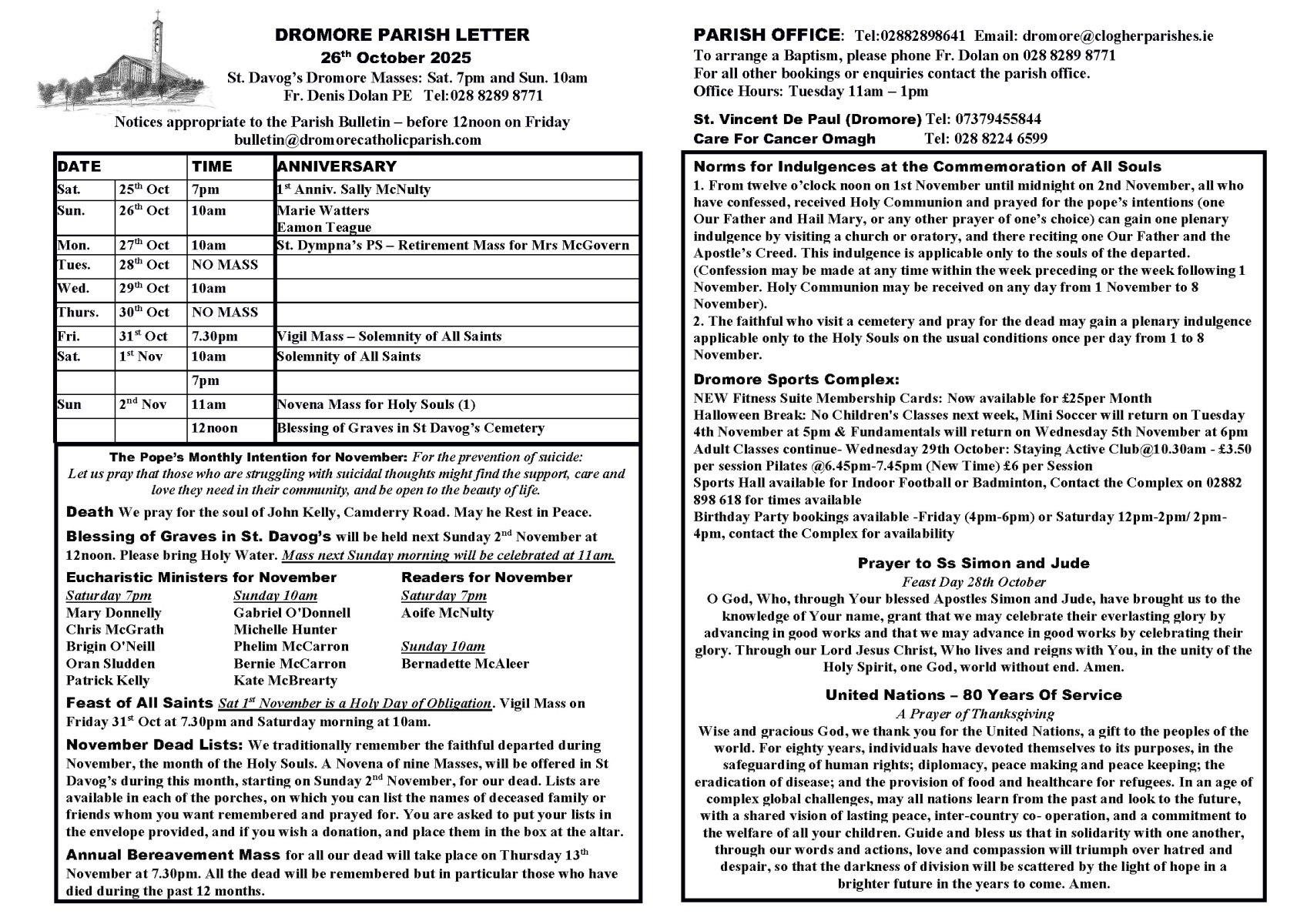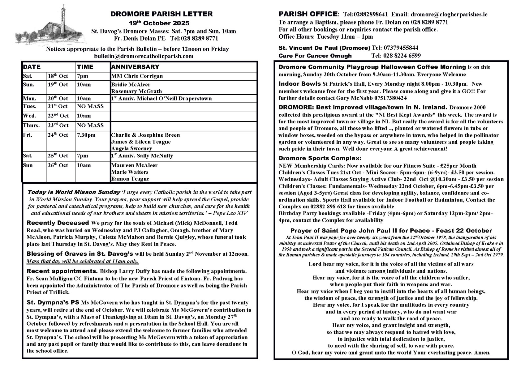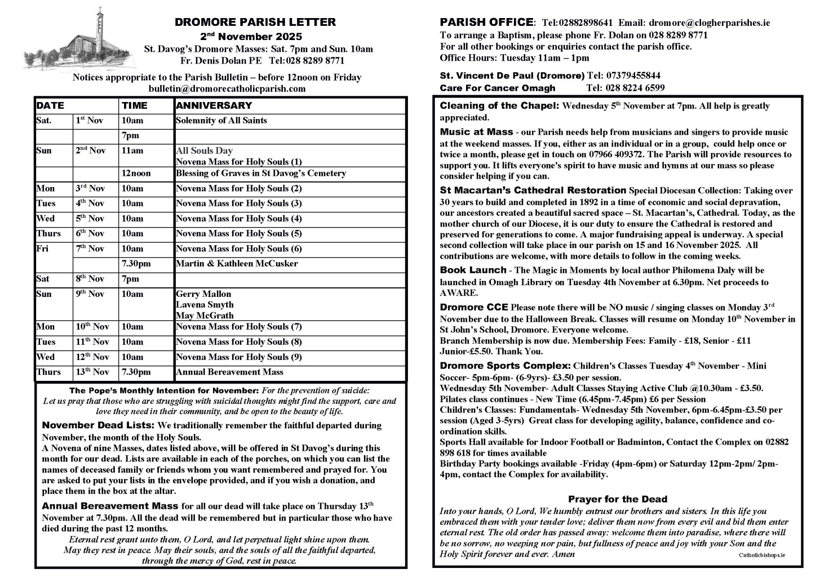 - For all other queries phone 028 8289 8641 Tuesday 11am – 1pm Email: dromore@clogherparishes.ie